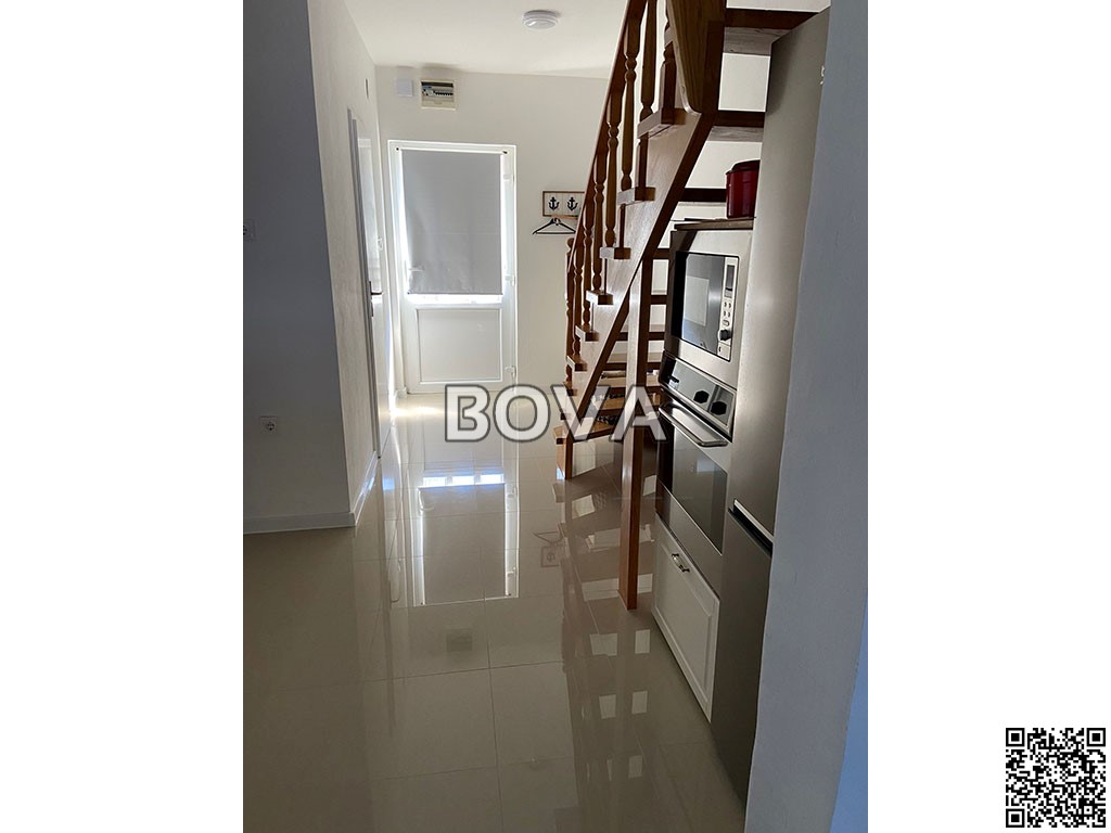 prvi kat se sastoji od kuhinje, kupatila, dnevnog boravka s lođom sa koje se pruža prekrasan pogled na more;