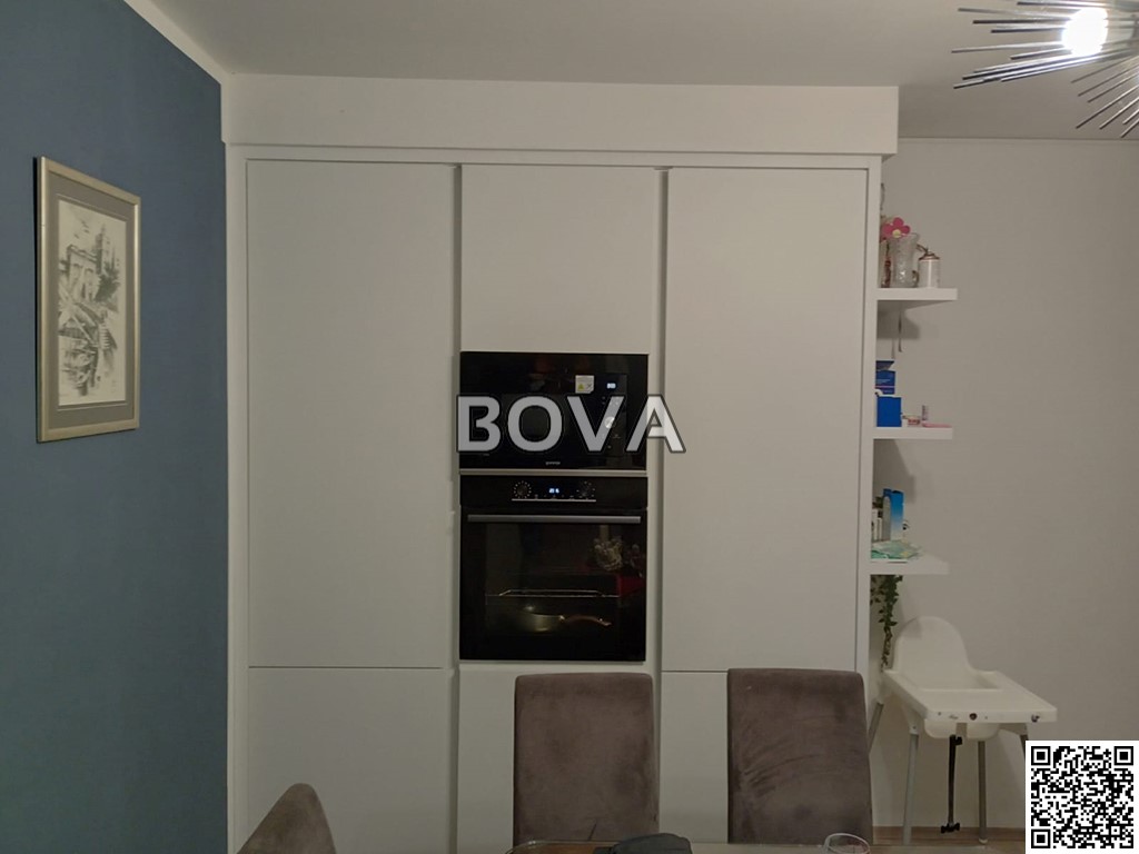 sastoji se od odvojene kuhinje koja ima ostavu i izlaz na balkon, toaleta, kupatila, tri sobe od kojih se jedna koristi kao dnevni boravak i ima izlaz na balkon s pogledom na more;